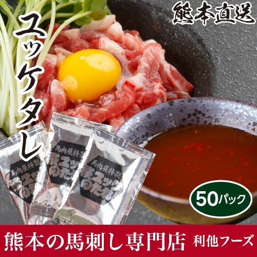 馬刺しユッケ専用タレ焼き肉店、居酒屋から毎日注文が殺到しています。馬刺しユッケのタレです。1パック1人前の分量となっているので使いやすい商品です。馬刺しユッケと一緒にご注文下さい。 馬刺しユッケ専用タレ50パック馬刺しユッケのタレ50パックセットです。ユッケと一緒にお買い求め下さい。 |