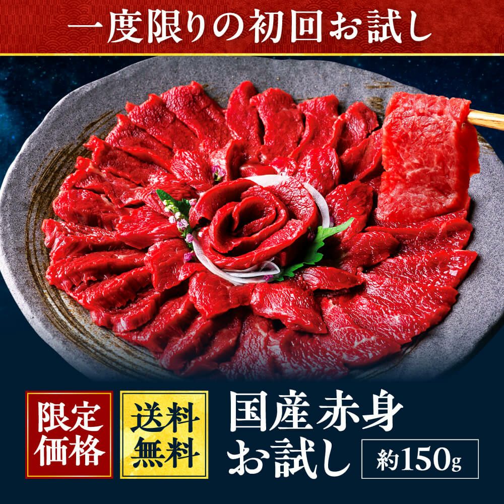 他の画像を見る 【初回限定】1回限りの送料無料セットです! 国産赤身お試しセット 150g★「2セット以上」でプレゼント有! 送料無料 クール便(冷凍) 販売価格 ¥ 2,980 税込 カートに入れる お気に入りに登録する